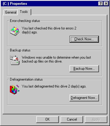 Defragment -- One of the most important things you can do to keep your system running at peak performance is to regularly defragment your computer. In the course of normal usage, files are regularly being read from and written to the disk, often in small chunks. As a result, pieces of files end up getting scattered around the disk. The "disk defragmenter," finds the scattered pieces of files and reorganizes them into contiguous chunks on your hard disk, making them run more efficiently. Windows 98 has a default setting that will move the files that you use most often to the beginning of the hard disk where they'll load faster. The first thing I do is change that setting. Because, it takes to long.) how do you use the disk defragmenter tool?